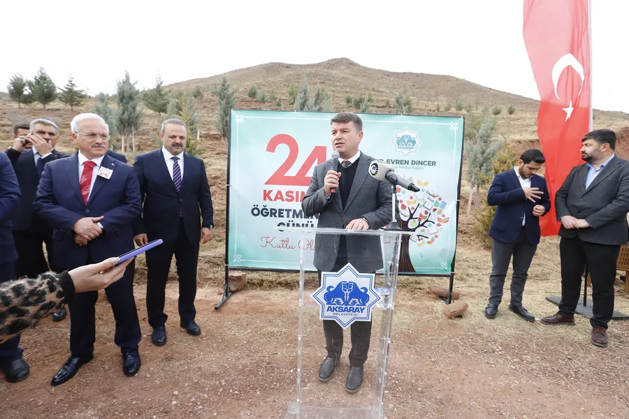 Bugünü taçlandırmak amacıyla böylesine bir etkinlik düzenledik. Her yıl bu fidan dikme faaliyetini gerçekleştiriyoruz. Bu etkinliğe katkı sunan ve destek veren herkese teşekkür ediyorum. Aksaray’ımızın ‘Yeşil Aksaray’ olması yolunda çalışmalarımızı bu şekilde sürdürmüş olacağız. Burada bulunan kıymetli öğretmenlerimiz başta olmak üzere, ülkemizin dört bir yanında özveriyle görev yapan tüm öğretmenlerimizin 24 Kasım Öğretmenler Günü’nü gönülden kutluyorum. Ebediyete irtihal eden tüm öğretmenlerimizi de rahmetle, minnetle anıyorum” ifadelerini kullandı.