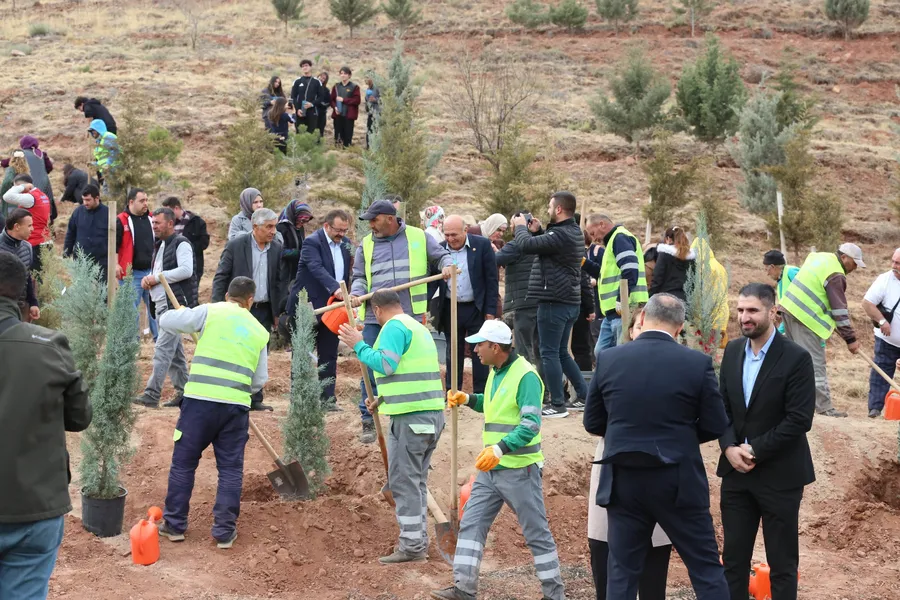 Konuşmaların ardından protokol üyeleri, öğretmenler ve öğrenciler kendileri için ayrılan alanlarda fidan dikti. Her bir fidanın üzerine isimlerinin yazılı olduğu etiketler yerleştirilerek, katılımcılar fidanları kendi adlarına toprakla buluşturdu.