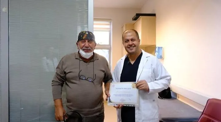 Hastaneye sundukları katkılar ve özverili çalışmalarından dolayı KBB uzmanları Sadık Başerdem ve Kemal Soytorun’a teşekkür belgesi takdim edildi.