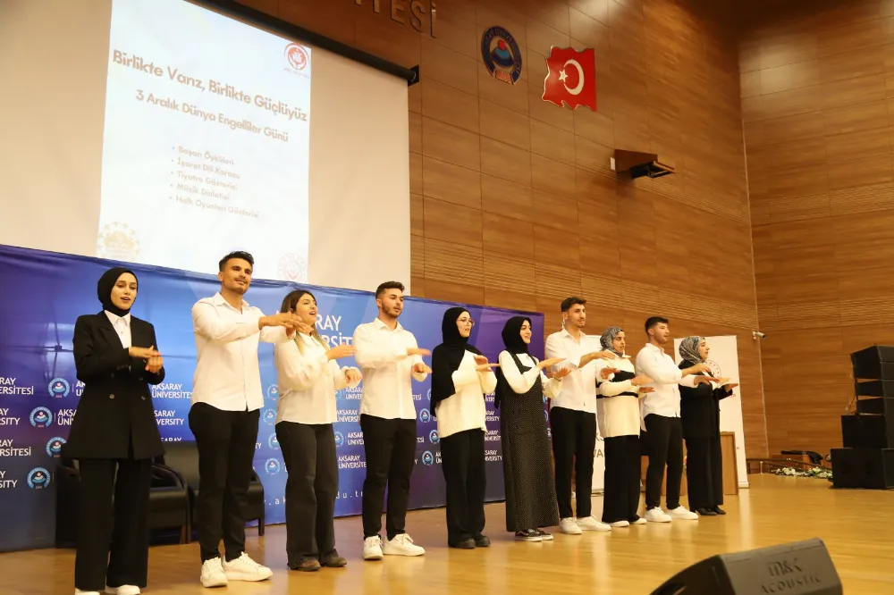 Aksaray Belediyesi Engelliler Koordinasyon Merkezi Başkanı Bekir Kaya da konuşmasında Aksaray’da 17 tane dernek ve spor kulübüyle beraber hizmetlerinin devam ettiğini dile getirdi. Aksaray Engelli Koordinasyon Merkezi'nin kurulduğu günden bu yana çok önemli çalışmalar yaptığını kaydeden Kaya, “Engelli Koordinasyon Merkezi'nin çalışmalarına başladığımızda o kadar güzel şeyler yapmışız ki biz bile farkında değiliz. Geçmiş dönemde de olsun, bu dönemde de olsun Aksaray'da özellikle Milli Eğitim camiasından olsun, üniversitemizden olsun bu tür konferans salonları her zaman bizim emrimizde. Kendilerine ayrı ayrı teşekkür ediyorum. Her yıl açtığımız kurslarda Aksaray'da engelli kardeşlerimizin kamuya yerleşmesini sağladık. Bu dönem, geçen dönem yaptığımız kurslar sonucunda 11 tane engelli kardeşimizi kısıtlı kadroda yerleştirdik” diye konuştu. Konuşmaların ardından işaret dili korosu mini konser verdi. Konsere salondaki davetliler de eşlik etti. Özel çocukların tiyatro gösterisi ise büyük beğeni topladı. Aksaray Üniversitesi Sosyal Bilimler Enstitüsü Türkçe Eğitimi Bölümü Yüksek Lisans Öğrencisi Şükran Altıntaş selamlama konuşması yaparak, yaşadığı zorlukları anlattı. Altıntaş, Aksaray Üniversitesi’nin engeli dostu bir üniversite olduğuna dikkat çekerek, engelli bireylere yönelik çalışmalarından dolayı ASÜ Rektörü Prof. Dr. Alpay Arıbaş’a teşekkür etti. Program zeybek gösterisi ve halk oyunlarının gösterisinin ardından sona erdi.