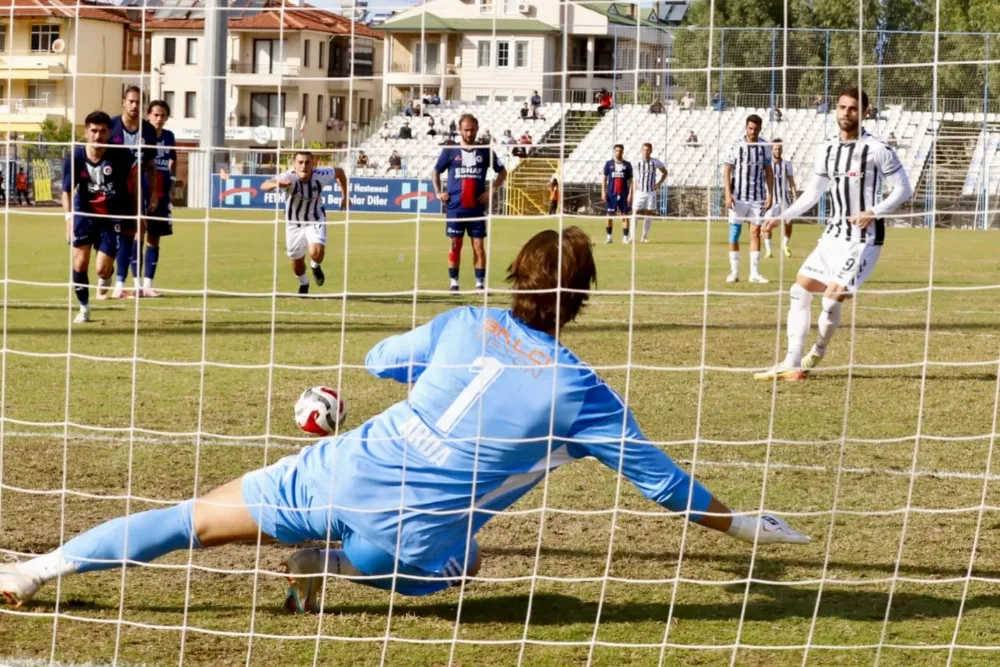 Fethiye İlçe Stadyumu’nda oynanan karşılaşmada Aksarayspor taraftarları takımlarını yalnız bırakmadı. Maçın 41. dakikasında ceza sahası içinde Oğuzhan Doğan’ın düşürülmesi sonucu hakem beyaz noktayı gösterdi. Penaltıyı kullanan İlker Karakaş, kaleci Arda’yı ters köşeye yatırarak takımını 1-0 öne geçirdi.