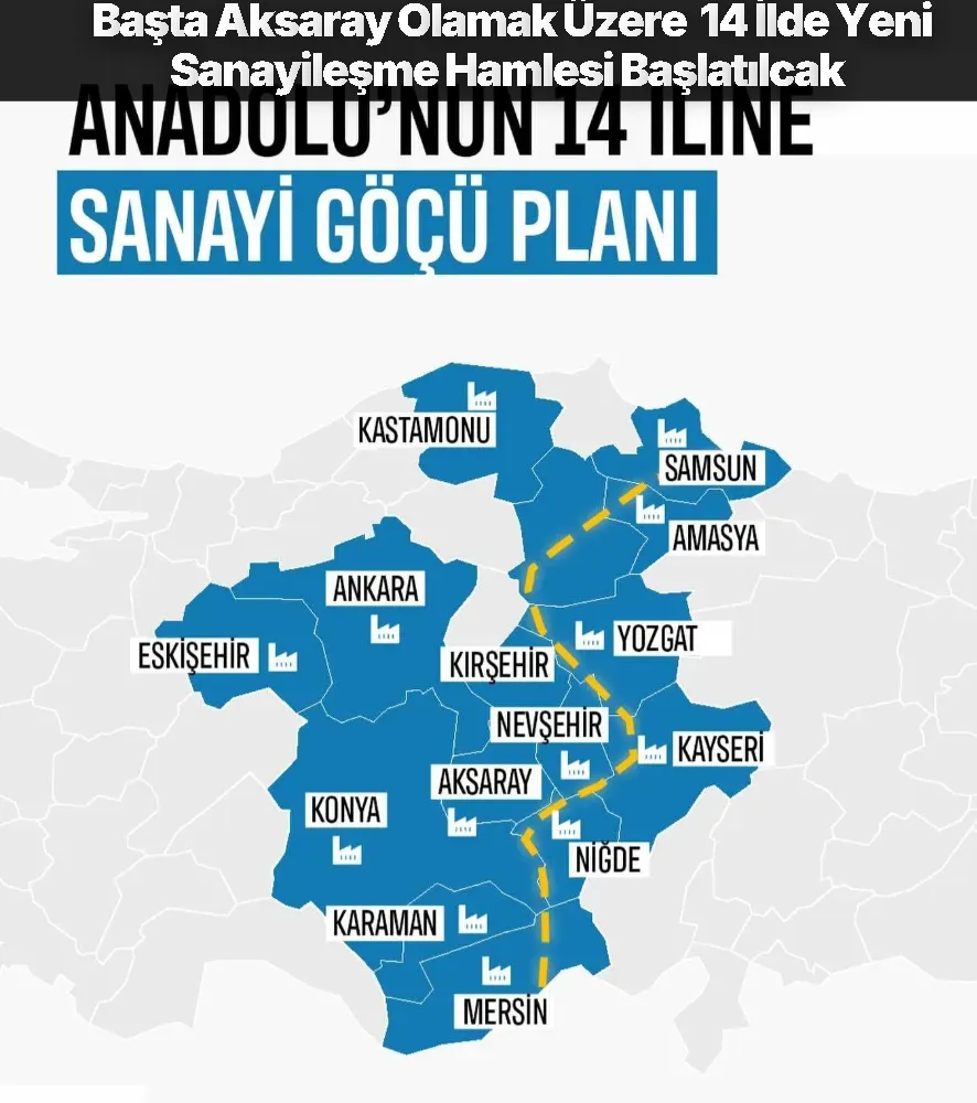 Marmara Bölgesi’nde giderek artan sanayi yoğunluğunu azaltmak, deprem riskine karşı daha güvenli üretim alanları oluşturmak ve Türkiye genelinde dengeli bir sanayi dağılımı sağlamak amacıyla Anadolu’da yeni sanayi havzaları kuruluyor. Bu kapsamda 14 ili kapsayan kapsamlı bir sanayileşme planı hayata geçiriliyor.