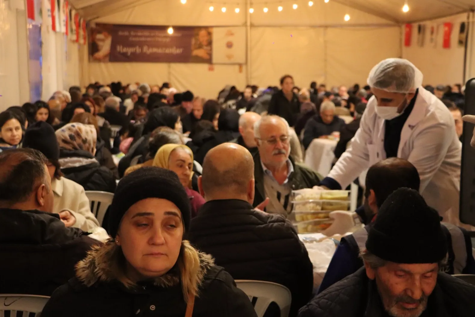 İSTANBUL (İGFA) - Maltepe Belediyesi iftar çadırı, yalnızca ihtiyaç sahiplerine değil; işten geç çıkan, evine yetişemeyen ya da iftar sevincini kalabalık bir sofrada paylaşmak isteyen herkese açık. Paylaşmanın ve komşuluğun ön plana çıktığı programda sıcak yemek ikramı, Ramazan’ın birlik ve beraberlik ruhunu güçlendiriyor.