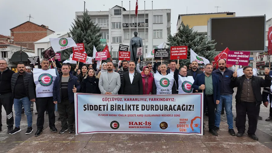 HAK-İŞ Konfederasyonu, 25 Kasım Kadına Yönelik Şiddete Karşı Uluslararası Mücadele Günü kapsamında 81 ilde eş zamanlı basın açıklamaları düzenleyerek şiddetin her türlüsüne karşı güçlü bir çağrıda bulundu. Kadınlar, erkekler ve çocuklarla birlikte meydanlarda yer alan HAK-İŞ, dünyanın neresinde olursa olsun zulme, işgale, ayrımcılığa ve şiddete karşı “ortak mücadele” mesajı verdi.
