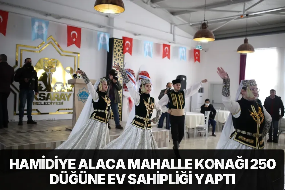 Aksaray Belediyesi’ne bağlı Hamidiye Alaca Mahalle Konağı ve Sosyal Tesisi, 2021 yılından bugüne kadar yaklaşık 250 düğüne ev sahipliği yaparak mahalle kültürünün yaşatılmasına ve sosyal dayanışmanın güçlenmesine önemli katkılar sağladı.