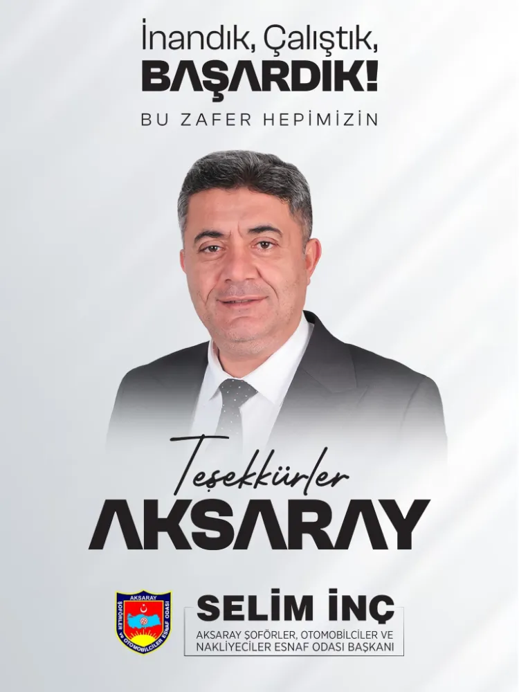 Başkan İnç, açıklamasının sonunda demokratik sürecin huzur ve güven içerisinde tamamlanmasına katkı sunan kurum ve kişilere de teşekkür etti. Aksaray Valiliği’ne, fedakârca görev yapan emniyet güçlerine, seçim kurulu görevlilerine, yarışa vizyon katan diğer adaylara ve süreci kamuoyuna doğru şekilde aktaran basın mensuplarına şükranlarını sundu.