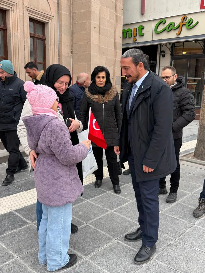 İYİ Parti Aksaray Merkez İlçe Teşkilatı, Türk Bayrağı’na yönelik yaşanan hadisenin ardından anlamlı bir etkinliğe imza attı. İYİ Parti Aksaray Merkez İlçe Başkanı Melikşah Yıldız ve yönetim kurulu üyeleri, kent merkezinde çarşı esnafı ve vatandaşlarla bir araya gelerek Türk Bayrağı dağıtımı gerçekleştirdi. Düzenlenen etkinlikte, bayrağın Türkiye Cumhuriyeti’nin bağımsızlığını, egemenliğini ve millî birliğini temsil eden en güçlü sembol olduğuna dikkat çekildi.
