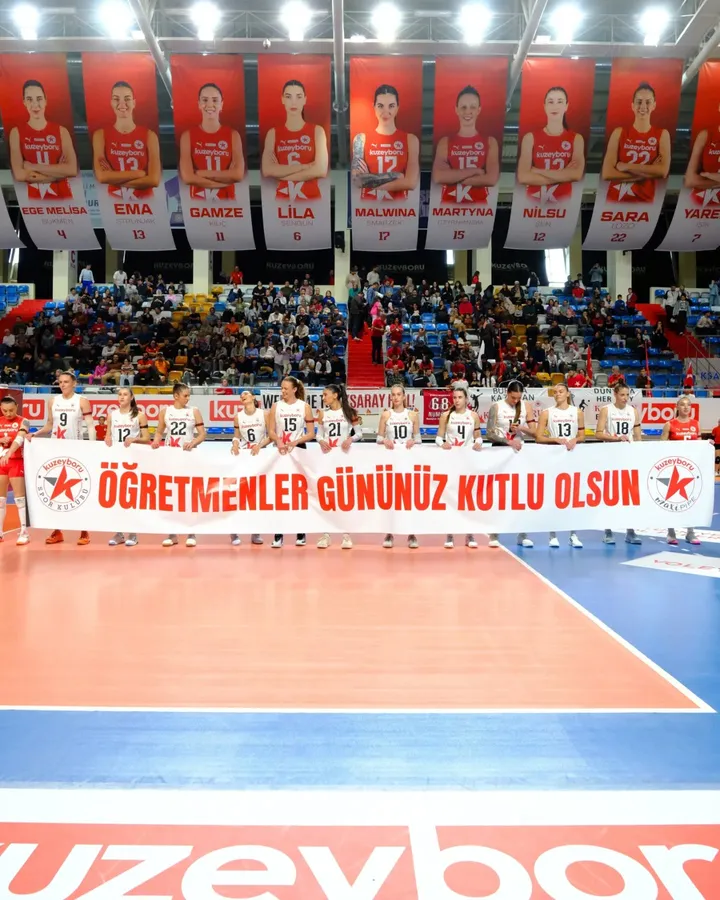Aksaray’da 24 Kasım Öğretmenler Günü, anlamlı bir etkinlikle kutlandı. Hayattaki en büyük şansın, küçük yaşlarda iyi bir öğretmene rastlamak olduğunu vurgulayan kulüp yönetimi, bugünkü maçta öğretmenleri özel konuk olarak ağırladı. Tribünlerde hem maç heyecanı hem de öğretmenler için hazırlanan sürprizlerin coşkusu yaşandı.