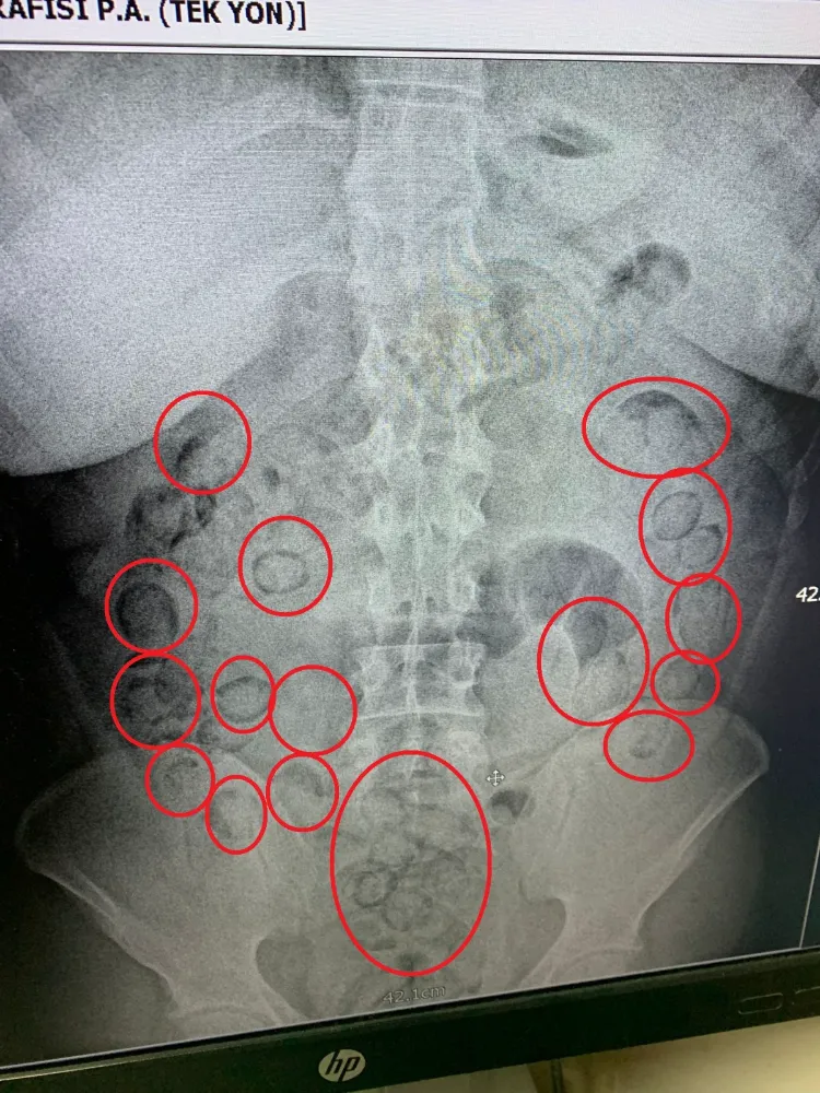 Aksaray Eğitim ve Araştırma Hastanesi’nde yapılan iç beden muayenesinde, zanlının midesinde toplam 101 parça halinde 433 gram metamfetamin gizlediği ortaya çıktı.