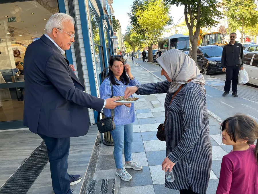 Sonbaharın geldiğini tezgâhlardaki hünnap, üzüm, roka, palamut, istavrit ve lahana gibi ürünlerden anladıklarını söyleyen Vali Kumbuzoğlu, esnafla birlikte Aksaray’ın bereketli pazar kültürüne vurgu yaptı.