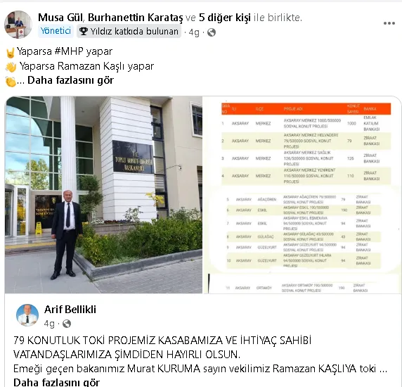 “Yaparsa MHP yapar” sloganıyla, AK Parti’nin TOKİ aracılığıyla Aksaray’da hayata geçireceği 2.476 konut projesini sahiplenir gibi paylaşan MHP Aksaray Milletvekili Ramazan Kaşlı, kamuoyunda tepkilere neden oldu. Kaşlı’nın bu paylaşımlarının, partinin son dönemde yaşadığı sendika krizini unutturma çabası olduğu ileri sürülüyor.