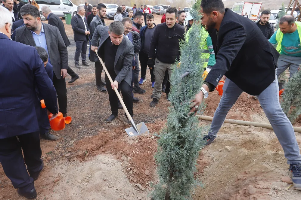 Konuşmaların ardından protokol üyeleri, öğretmenler ve öğrenciler kendileri için ayrılan alanlarda fidan dikti. Her bir fidanın üzerine isimlerinin yazılı olduğu etiketler yerleştirilerek, katılımcılar fidanları kendi adlarına toprakla buluşturdu.