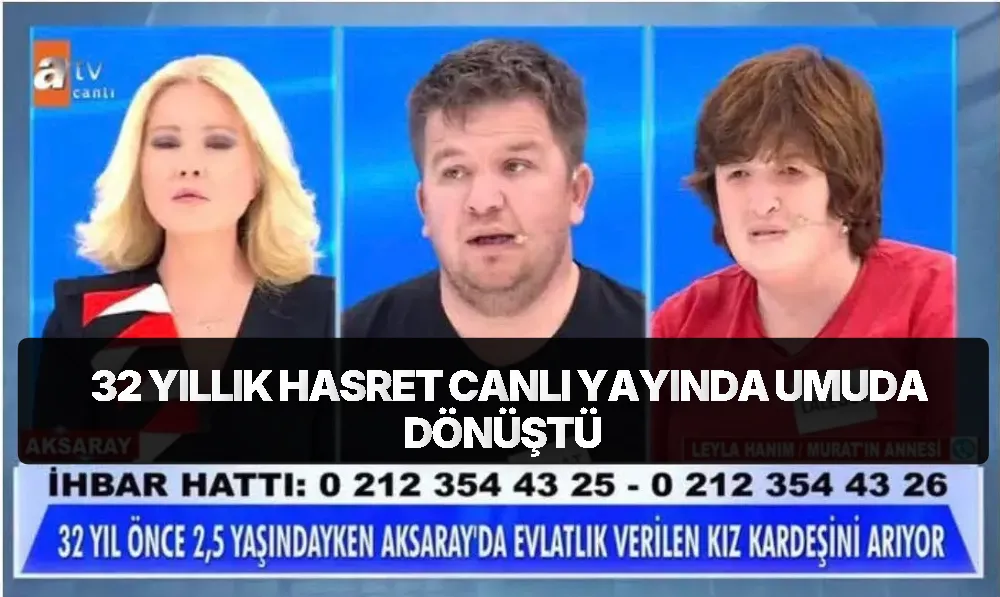 Aksaray’dan Murat Çelik, henüz 2,5 yaşındayken evlatlık verilen kız kardeşi Pınar’a kavuşabilmek için ATV ekranlarında yayınlanan Müge Anlı ile Tatlı Sert programına başvurdu. Ortaköy ilçesinden canlı yayına katılan Çelik’in anlattıkları, 32 yıllık bir hasretin ve parçalanmış bir ailenin dramını gözler önüne serdi.