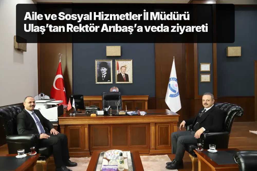 Karaman’a tayini çıkan Aksaray Aile ve Sosyal Hizmetler İl Müdürü Nurettin Ulaş, Aksaray Üniversitesi (ASÜ) Rektörü Prof. Dr. Alpay Arıbaş’a veda ziyaretinde bulundu.