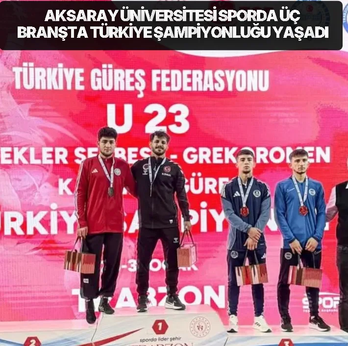 Aksaray Üniversitesi (ASÜ), spor alanındaki başarılarına yenilerini ekleyerek üç farklı branşta Türkiye şampiyonluğu elde etti. Aksaray Üniversitesi Spor Bilimleri Fakültesi öğrencileri; U23 Serbest Güreş Türkiye Şampiyonası, Türkiye Üniversitelerarası UNİLİG Kros Şampiyonası ve Büyükler Ferdi Türkiye Halter Şampiyonası’nda birincilik kürsüsüne çıkarak hem üniversitelerinin hem de Aksaray’ın gururu oldu.