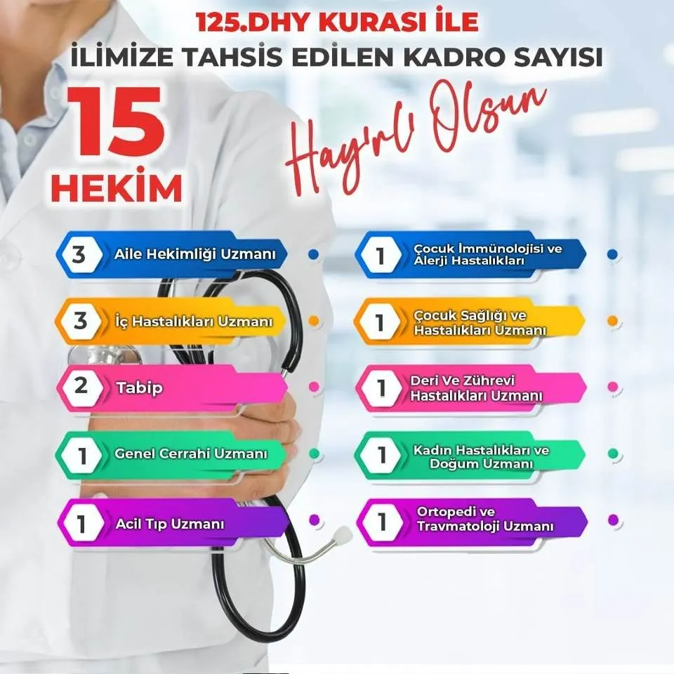 125. Dönem Devlet Hizmeti Yükümlülüğü (DHY) Kurası Sonuçlandı Sağlık Bakanlığı tarafından gerçekleştirilen 125. Dönem Devlet Hizmeti Yükümlülüğü (DHY) kurası kapsamında, Aksaray’a toplam 15 yeni hekim kadrosu tahsis edildi. Yeni kadrolar, sağlık hizmetlerinin kalitesini artıracak ve vatandaşlara sunulan hizmetleri güçlendirecek.