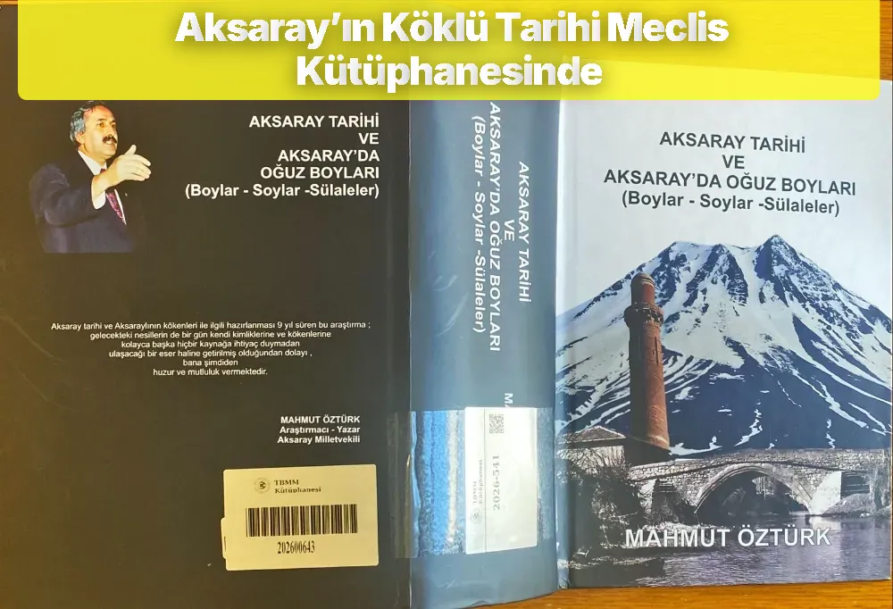 Aksaray’ın tarihsel hafızasına ışık tutan önemli bir eser, Türkiye Büyük Millet Meclisi Kütüphanesi envanterine girdi. Aksaray Milletvekili, araştırmacı ve yazar Mahmut Öztürk tarafından kaleme alınan “Aksaray Tarihi ve Aksaray’da Oğuz Boyları (Boylar – Soylar – Sülaleler)” adlı kapsamlı çalışma, kent tarihi alanında önemli bir başvuru kaynağı olarak dikkat çekiyor.