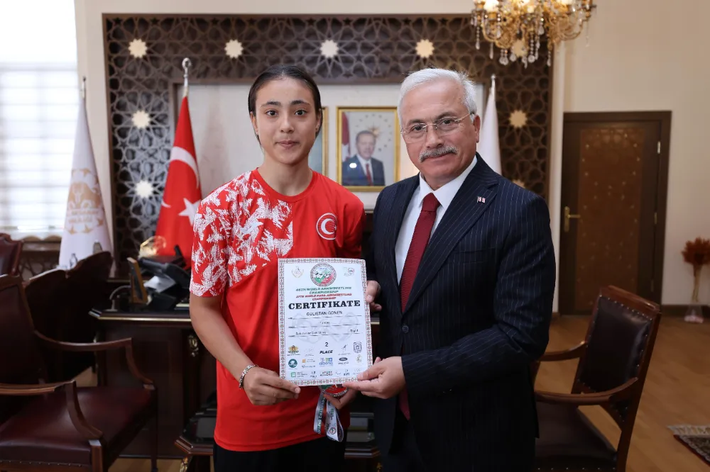 10-23 Eylül 2025 tarihleri arasında Bulgaristan’da düzenlenen 2025 Dünya Bilek Güreşi Şampiyonasında 15 Yaş altı 60 kiloda ülkemizi temsil eden Gülistan Gönen Sağ Kol kategorisinde Dünya 2.’si oldu. Kazandığı madalya ile birlikte Vali Mehmet Ali Kumbuzoğlu’nu ziyaret eden Gönen; ‘Okulumuzu ziyaret ettiğinizde size verdiğim sözleri hep tuttum. Bölge şampiyonluğu ardından Türkiye, Avrupa derecelerinin ardından Dünya 2.’liğini kazandım çok mutluyum’ dedi.