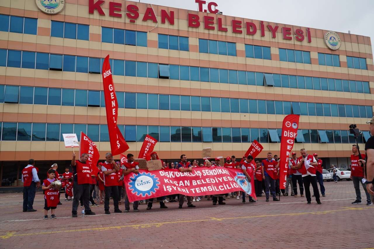 Keşan Belediyesi'nde çalışan DİSK Genel İş Sendikası'na üye 51 sözleşmeli personel, yapılan toplu iş sözleşmesinde yer alan seyyanen zammın kendilerine yansıtılmadığını iddia ederek, hakkını talep etmek için dün yine bu kez aileleri ile birlikte Keşan Belediyesi önünde toplanarak hakları için seslerini yükseltti.