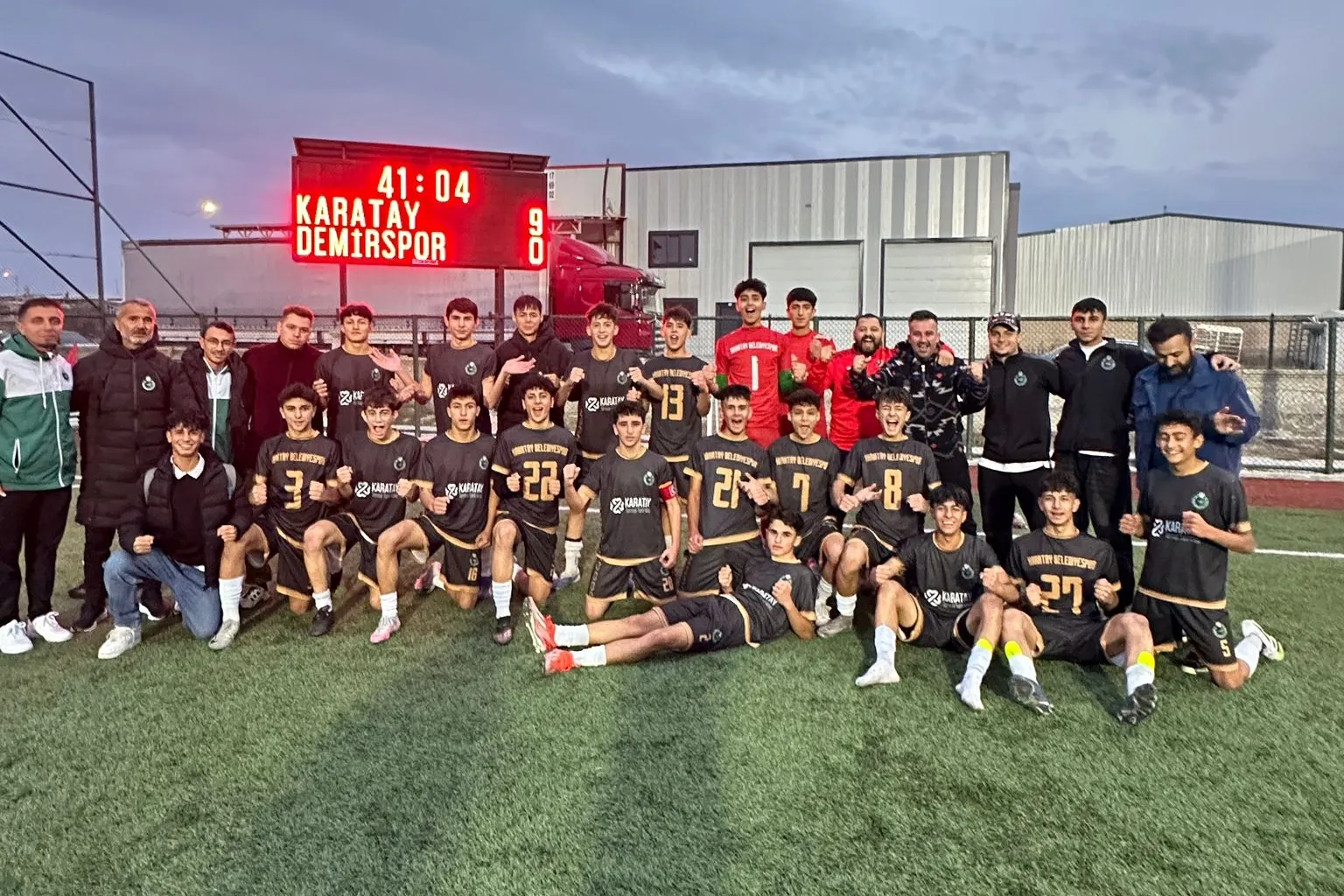 U16 Ligi B Grubu’nda yer alan Karatay Belediyespor U16 Takımı ise çıktığı 15 maçta 14 galibiyet ve 1 beraberlik alarak namağlup şekilde yoluna devam ediyor. 63 gol atan ve sadece 9 gol yiyen takım, dengeli oyun yapısıyla öne çıkıyor.