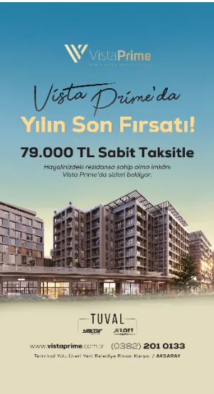 Aksaray’ın son yıllarda en dikkat çeken konut projelerinden biri olan Vista Prime, yılın son kampanyasını duyurdu. Modern mimarisi ve şehrin yükselen bölgesindeki konumuyla yoğun ilgi gören proje, ev sahibi olmak isteyenler için 79.000 TL sabit taksit avantajıyla yeni bir dönem başlattı.