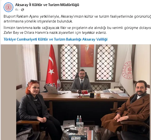 “xxxx Reklam Ajansı yetkilileriyle, Aksaray’ımızın kültür ve turizm faaliyetlerinde görünürlüğünün artırılmasına yönelik istişarelerde bulunduk…”